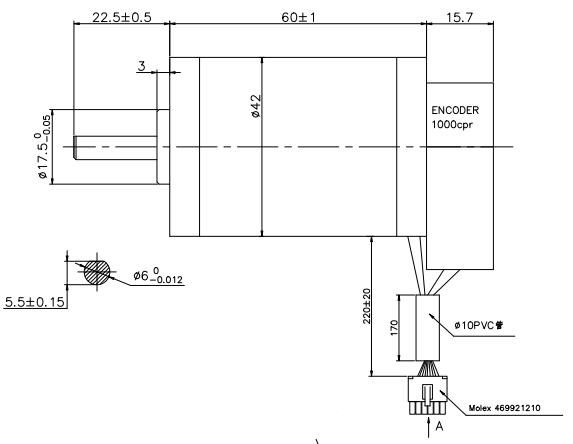 4.Dimensions of 42BL60 dc brushed motor: (Unit=mm)